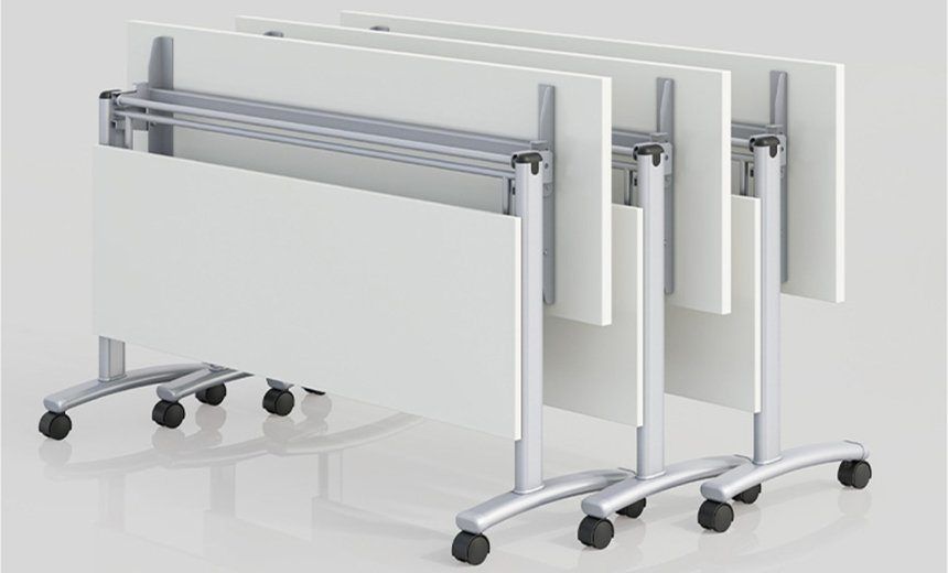 Apo offers a flexible solution for any space requiring a work surface to power teamwork. It is available in 2 types of bases and 3 configurations. Apo’s steel legs with or without casters ensure both steadiness and agility, and flip design leaves more room for a series of activities to occur.