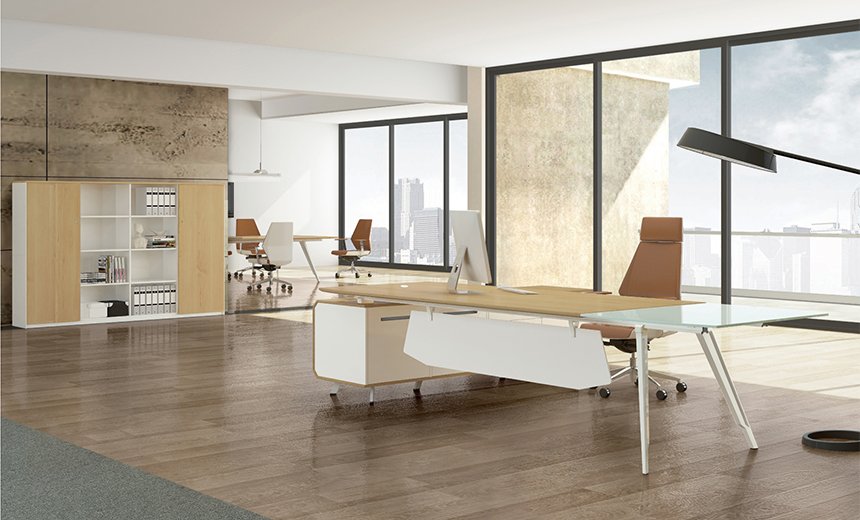 Kross is a comprehensive office set with executive desks, cabinets, conference tables, and occasional tables included. The encounter of multiple materials-metal, wood, and glass breaks the monotony of traditional desks and endows your real estate with an extraordinary charm. A journey of vogue is unwinding in front of us.