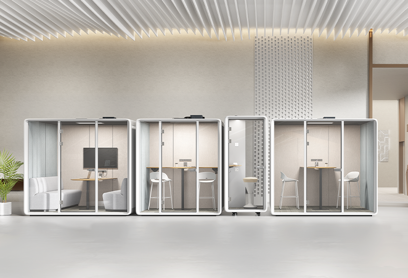 Inspired by the spacecraft, N-Space aims at creating a “Me space” in a “We space”, and helps you bid farewell to “noise gravity”. The excellent sound-insulation performance of N-Space makes it a perfect solution for phone calls, communication, video-conferencing and focused work in a shared space.