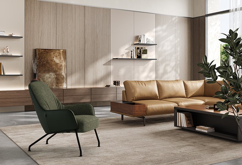 Inspired by animal stretches, its relaxed look, natural hues, and ergonomic design bring nature into your space.